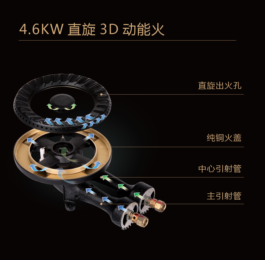 國內(nèi)少數(shù)具有技術(shù)優(yōu)勢將火力達到4.6KW,同時熱效率達到55%的集成灶燃燒系統(tǒng)。